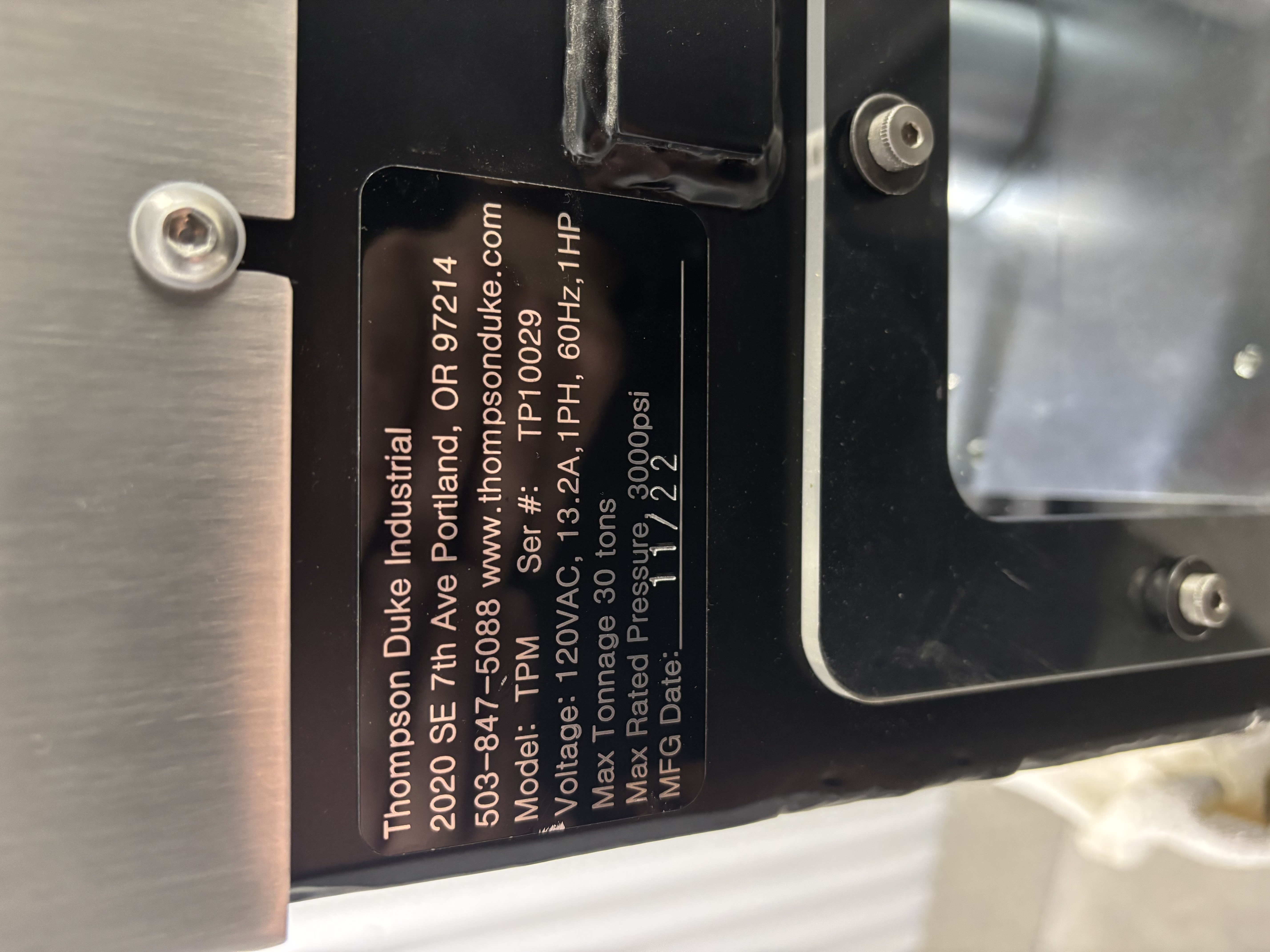 The Thompson Duke Industrial TPM Mouthpiece Press is a 30 ton industrial mouthpiece press
